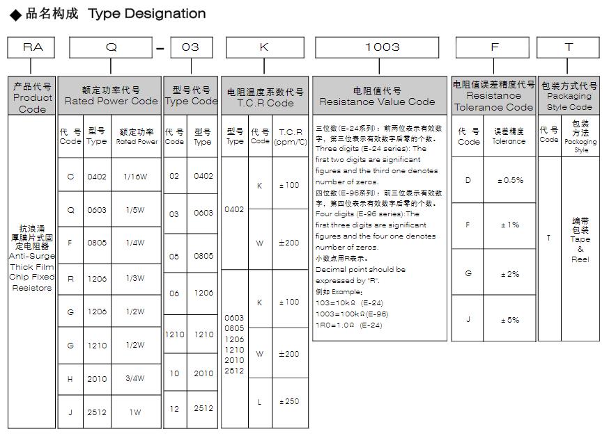 風(fēng)華抗浪涌厚膜片式固定電阻器型號命名規(guī)則: