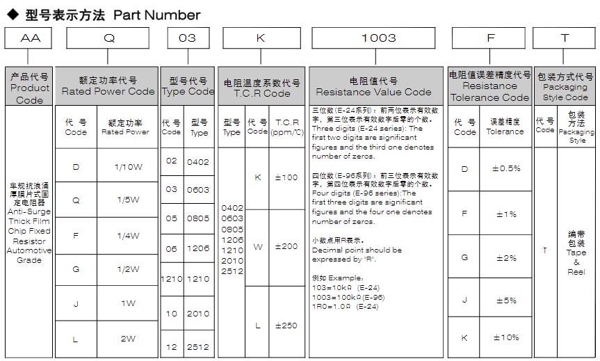 風華高科車規(guī)抗浪涌厚膜片式固定電阻器型號命名規(guī)則: