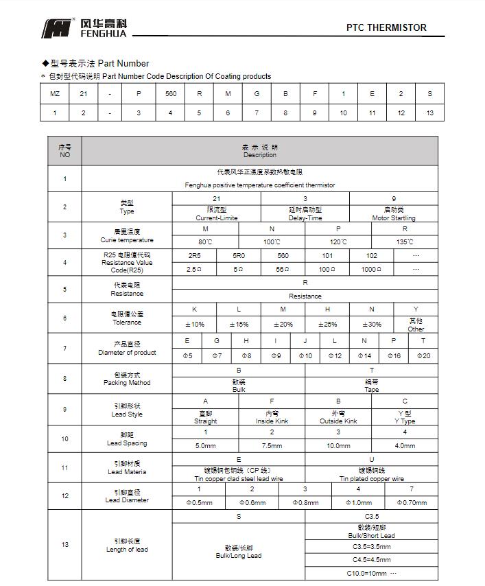 風(fēng)華高科PTC熱敏電阻命名規(guī)則: