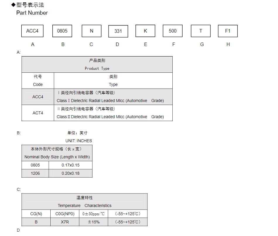 風華高科車規徑向引線多層陶瓷電容器型號命名規則: